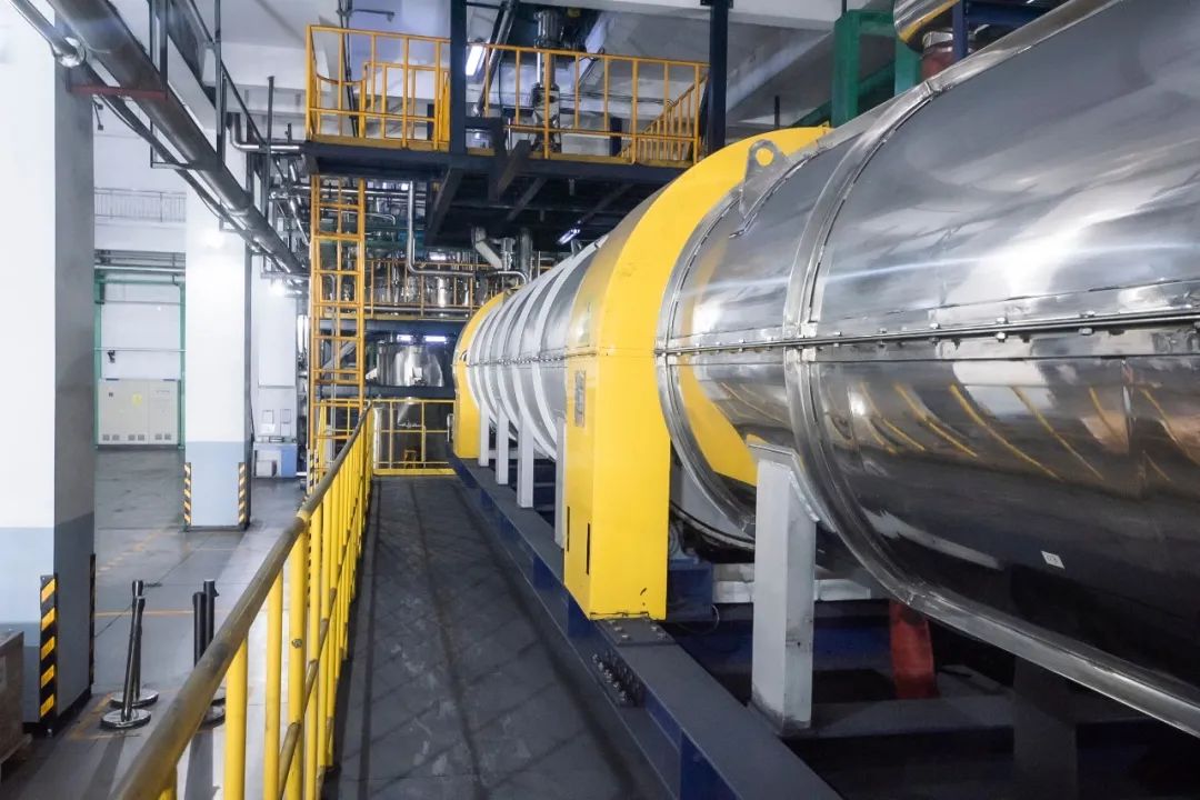 外觀普通而整潔的白色廠房里,三、四層樓高的產(chǎn)線設(shè)備,通過粗細(xì)不同、繁密交織的管道,連接一道道復(fù)雜的工藝。滾動(dòng)的窯爐中,中控顯示跳動(dòng)的數(shù)字背后、指針移動(dòng)的反應(yīng)釜里,是寧夏杉杉能源源源不斷的生產(chǎn)力。