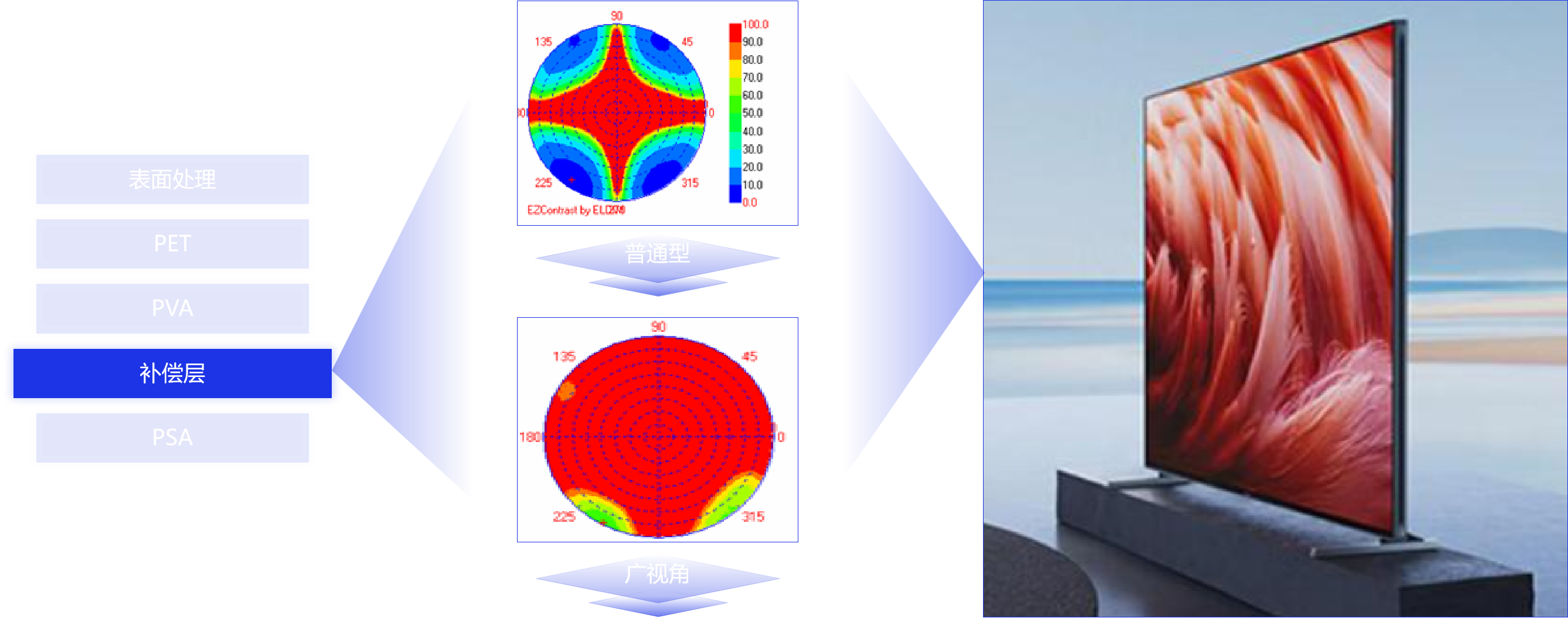 LCD偏光片一直以來(lái)就是杉金光電的強(qiáng)項(xiàng)。本屆DIC EXPO,杉金光電帶來(lái)了SLR超低反射TV偏光片、ATW-廣視角技術(shù)偏光片、VA超高透過(guò)偏光片、RF偏光片、QWP圓偏光型偏光片等多項(xiàng)優(yōu)勢(shì)產(chǎn)品,全方位展示了杉金光電在高端LCD偏光片上的強(qiáng)勁優(yōu)勢(shì)。在大尺寸偏光片方面,杉金光電填補(bǔ)了我國(guó)在大型偏光片生產(chǎn)制造項(xiàng)目的空白,并成功突破了大尺寸偏光片在高溫高濕環(huán)境中收縮漏光、強(qiáng)光環(huán)境反光等問(wèn)題,為TV等產(chǎn)品帶來(lái)了更廣的視角和更亮、更清晰的畫質(zhì)。