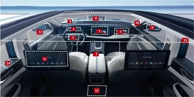 有相關(guān)機(jī)構(gòu)預(yù)測,未來1-2年,主機(jī)廠單車平均屏幕搭載數(shù)量或?qū)⑦_(dá)到7個(gè),“液晶儀表+中控屏+抬頭顯示屏(HUD)”將成標(biāo)配,副駕娛樂屏、流媒體后視鏡、電子外后視鏡等將成為主要選配產(chǎn)品。