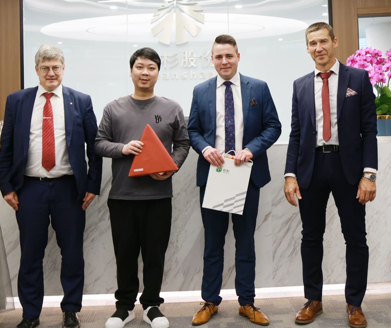 4月19日,芬蘭科斯霍爾姆市議會(huì)主席Christoffer Ingo、市長(zhǎng)Rurik Ahlberg、技術(shù)總監(jiān)Ben Antell及芬蘭投資署成員一行蒞臨杉杉